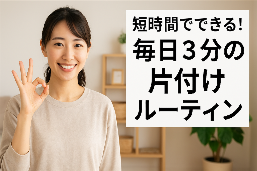 片付けが続かない最大の理由は「ハードルが高い」から。大幅に時間を取られそうだと感じると、人は後回しにします。そこで有効なのが「短く・毎日」のルーティン。心理学でも「小さな成功体験」を積むことで習慣化しやすいことが示されています。3分なら心理的抵抗がほとんどなく、しかも毎日続ければ合計で月に約90分の効果が得られます。